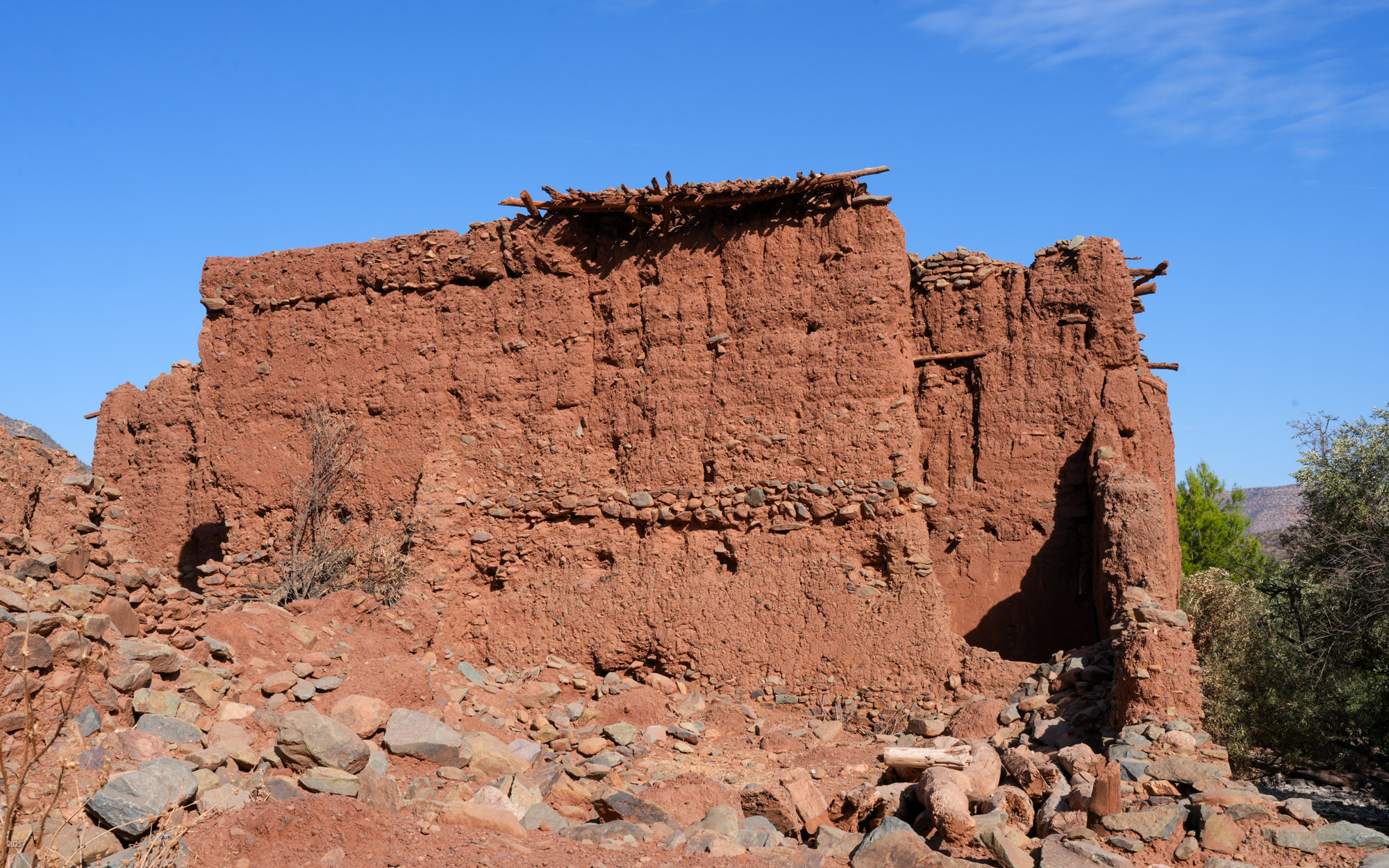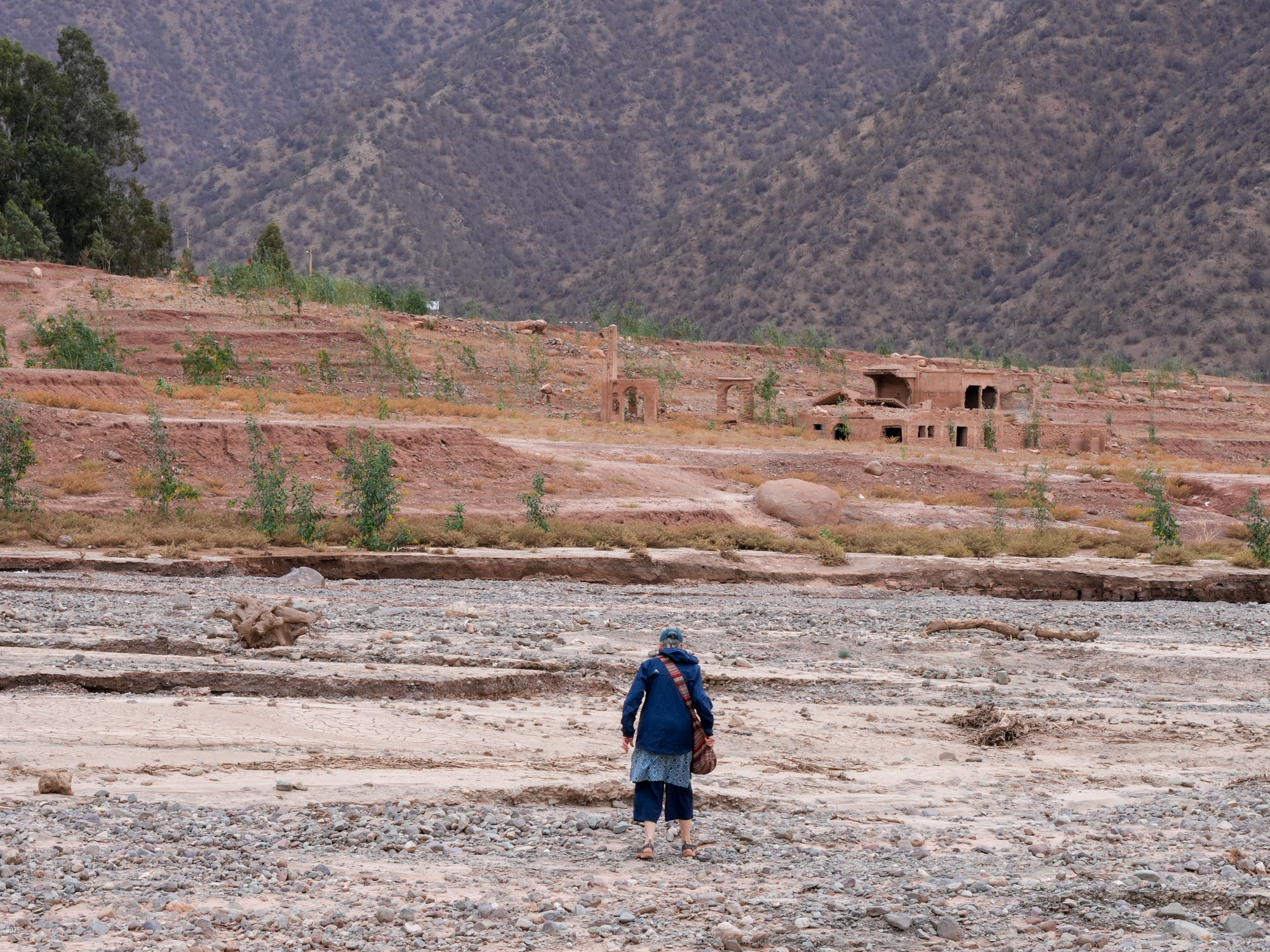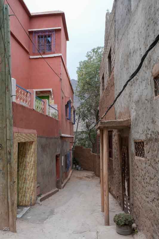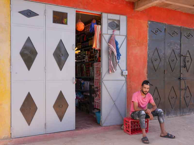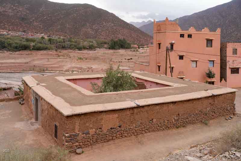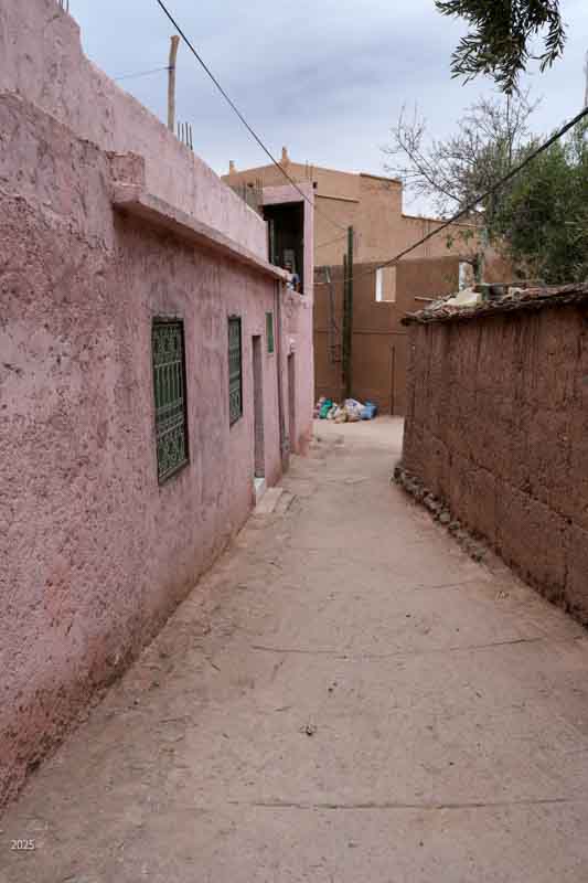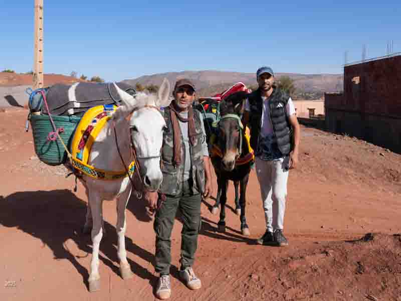 The income from foreign tourists and Marrakesh visitors is very important for the town as it has suffered seven years of drought and was hit by an earthquake in September 2023. Almost 3,000 people died in the earthquake. As the total population of the town before the quake was about 7,000, the quake was devastating. Many buildings were destroyed. In exploring the area we found remnants of tent and prefab building camps and many buildings still lying in ruins. We also found a lot of construction, as families still work to repair the damage. Most of the construction now seems to be done within the family, with fathers and sons working together. Many families are also renovating or building to offer night stays to visitors.
