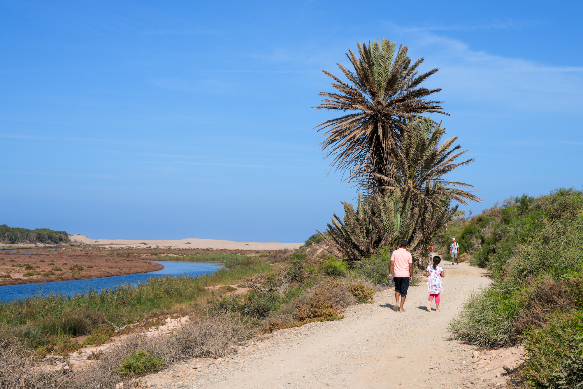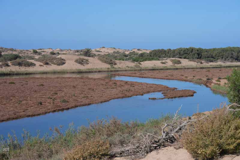 For bird watching the first kilometre below Sidi R’bat is better. Here, as the river makes its way to the sea, it meanders close to the path. The second kilometre offers views across the valley but the river is quite far away